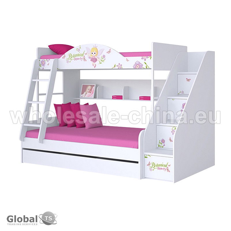 Single bed for little princess. It is made in special pink colour. For production we use high quality hardware and MDF board. Eco-friendly material which is not harmful for your kids.