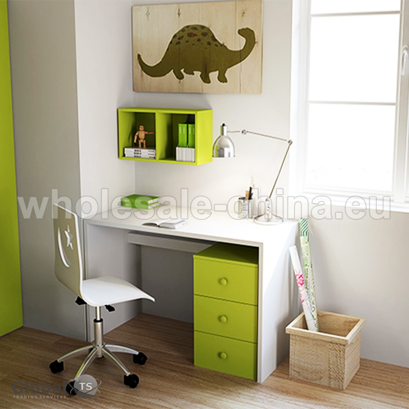 This comfortable table has additional shelves and three drawers which can accomodate a lot of school items. It has a nice, convenient shape. This table is made of high-quality MDF and is available in differnt colours. It is non-toxic and durable.