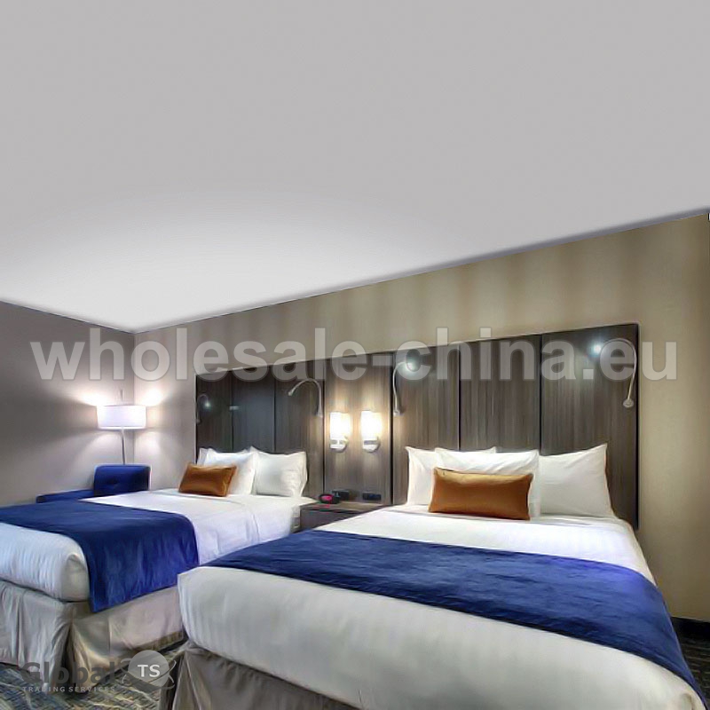 Stylish set for hotel bedroom. This full size bed is in elegant and and made in contemporary style. Enhance your room’s look with the clean lines and upholstered design that is perfectly suit for any bedroom environment. We offer you full customization.