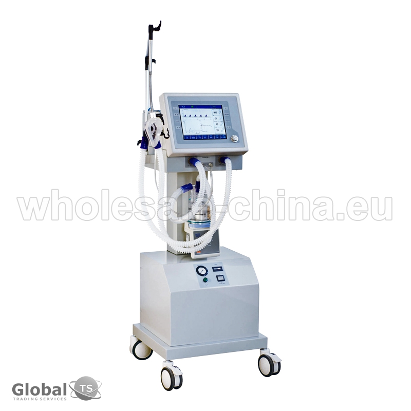 High quality medical ventilator machine. It is gas driven by medical compressed oxygen and compressed air. In the aspiratory phase, two streams of compressed gas (compressed oxygen and compressed air) flow into a high performance air-oxygen mixer to form a mix of oxygen and air with a certain pressure. Other specifications: