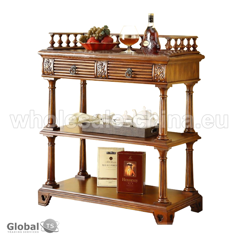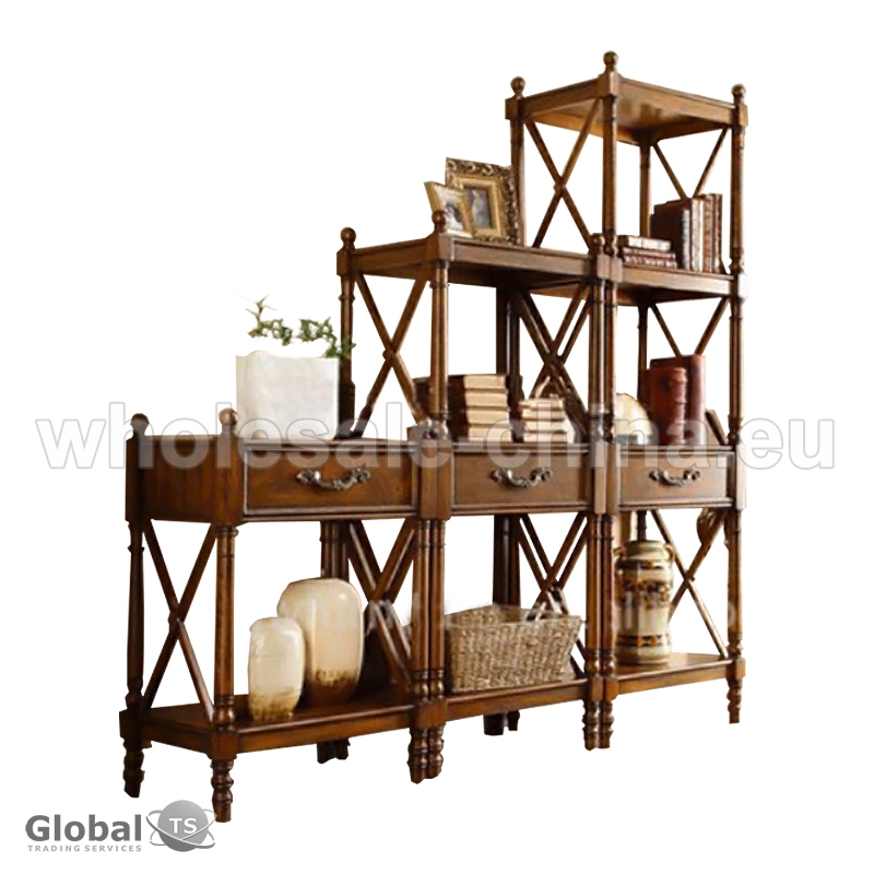 Storage rack for living room which is made of solid oak wood. Great desing in antique style will provide for your room a special atmosphere. It is convenient in use, because you may keep here different things in it. It consists of 3 parts. Sizes: 2-Layer shelf: 600*400*888 mm; 3-Layer shelf: 600*400*1394 mm; 4-Layer shelf: 600*400*1900 mm.