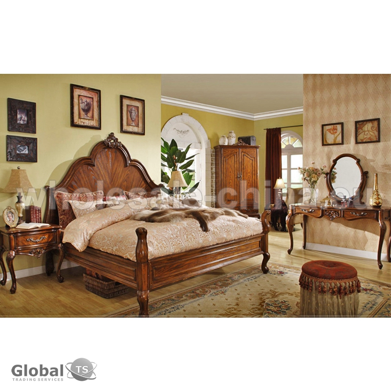 Dress your bedroom in classic style with this beautiful bedroom set. This bedroom furniture is crafted of quality materials and solid woods to ensure years of function and beauty. We offer you a luxurious bedroom set which includes: bed, nightstand, drssing table with mirror. You absolutely will love this set.