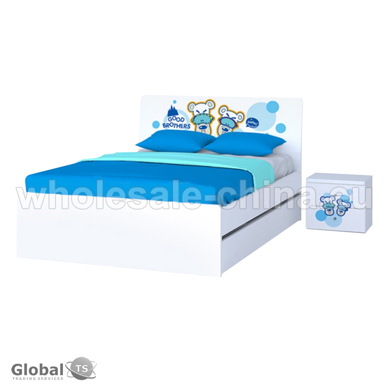 Here you can see the latest design of kid's bed with cartoon pictures. It doesn't take up much space but at the same time performs its main function for your kid's room interior. Environmentally friendly MDF with melamine surface. It will surely delight your kids for many years. And moreover it is very compact and durable.