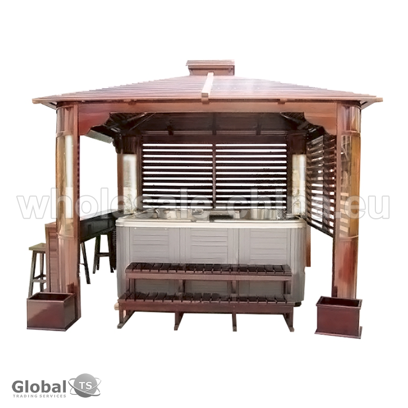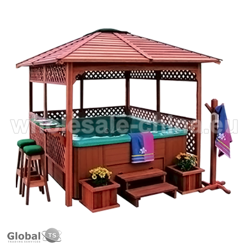 Garden wooden gazebo for outdoor hot tub. Common characteristics: