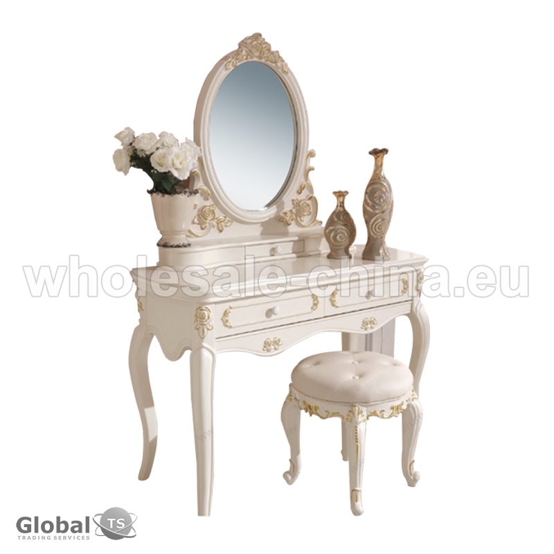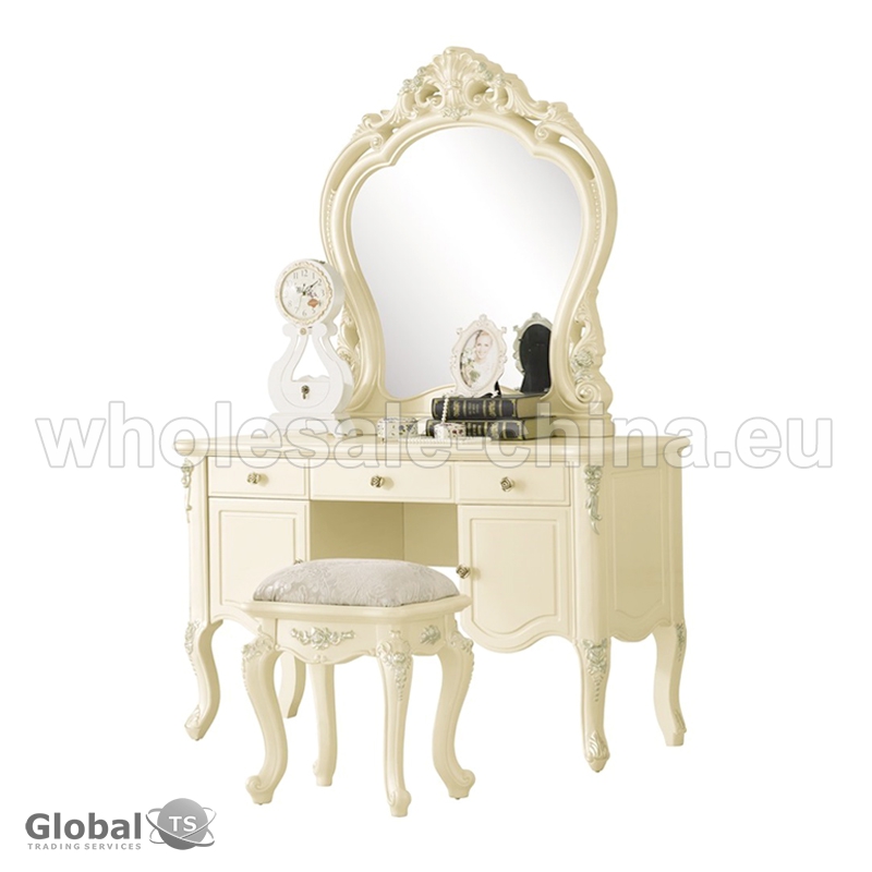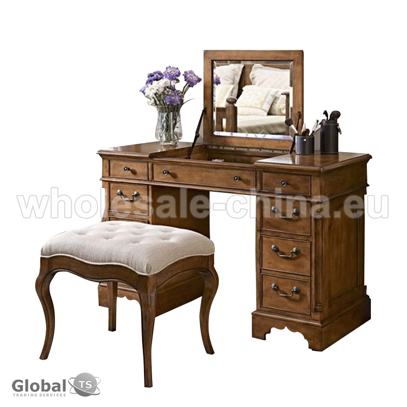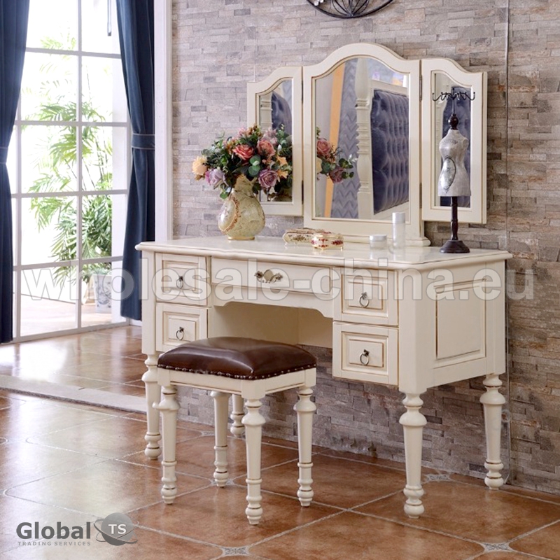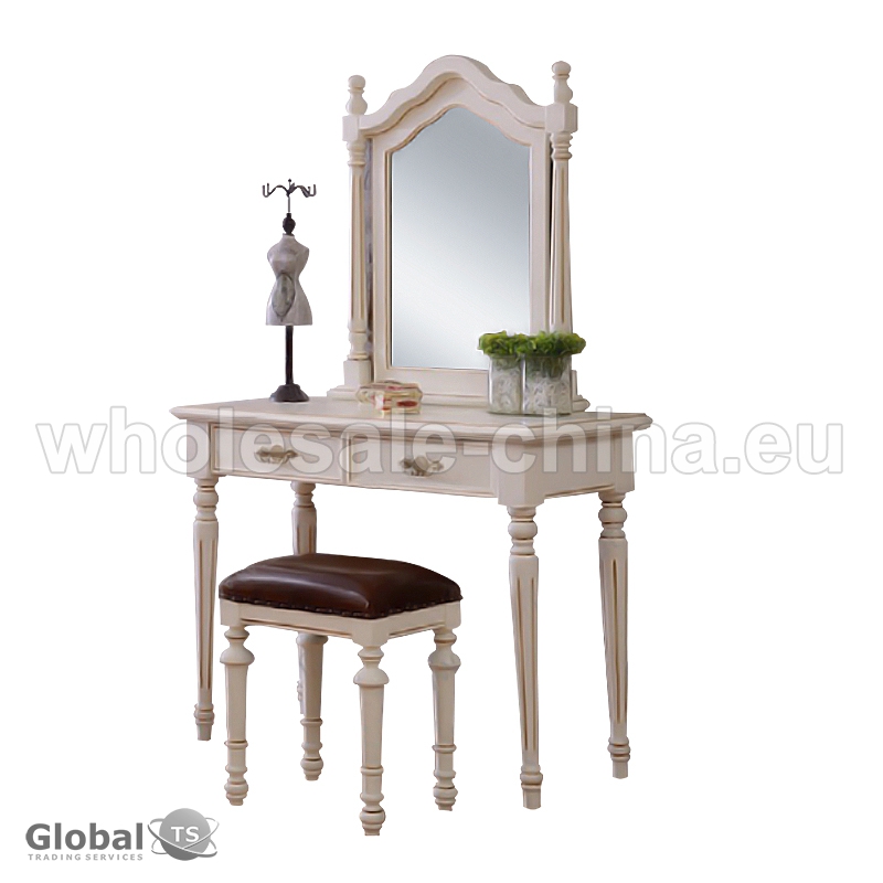 Look at our stylish dressing table! It is modern and simple. Design makes it a great addition to your bedroom. Made of solid wood, this dressing table is durable and sturdy. Come with a cushioned stool, it can provide a comfortable seat when you making up. Do not hesitate to buy one.