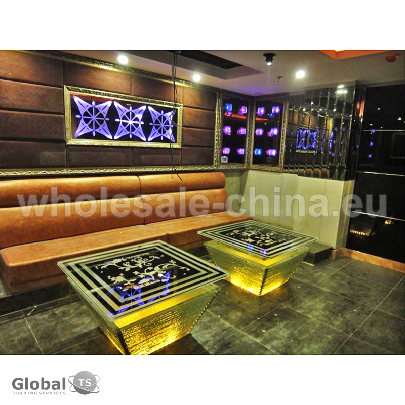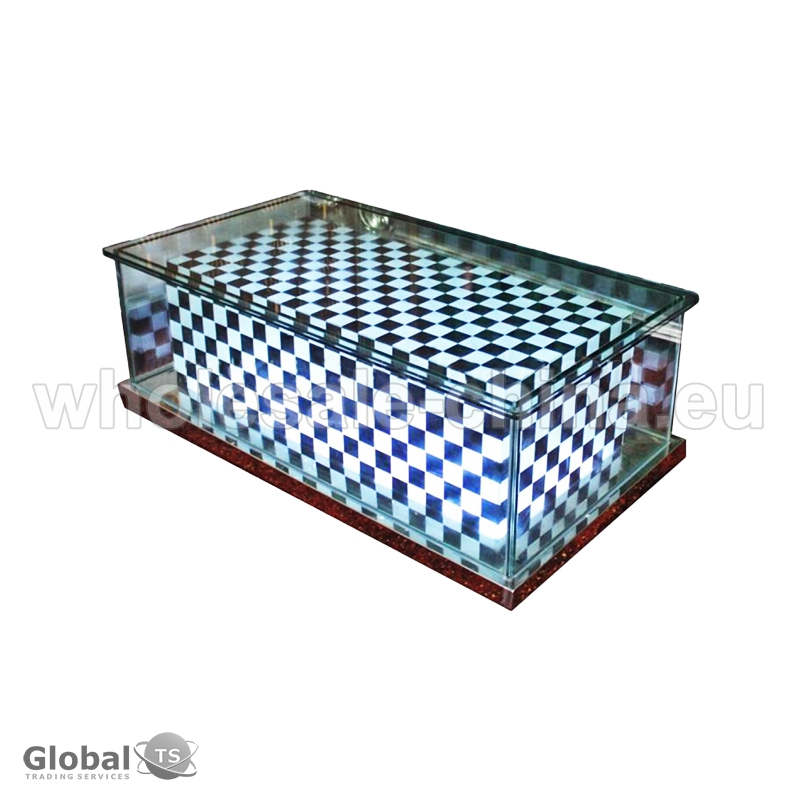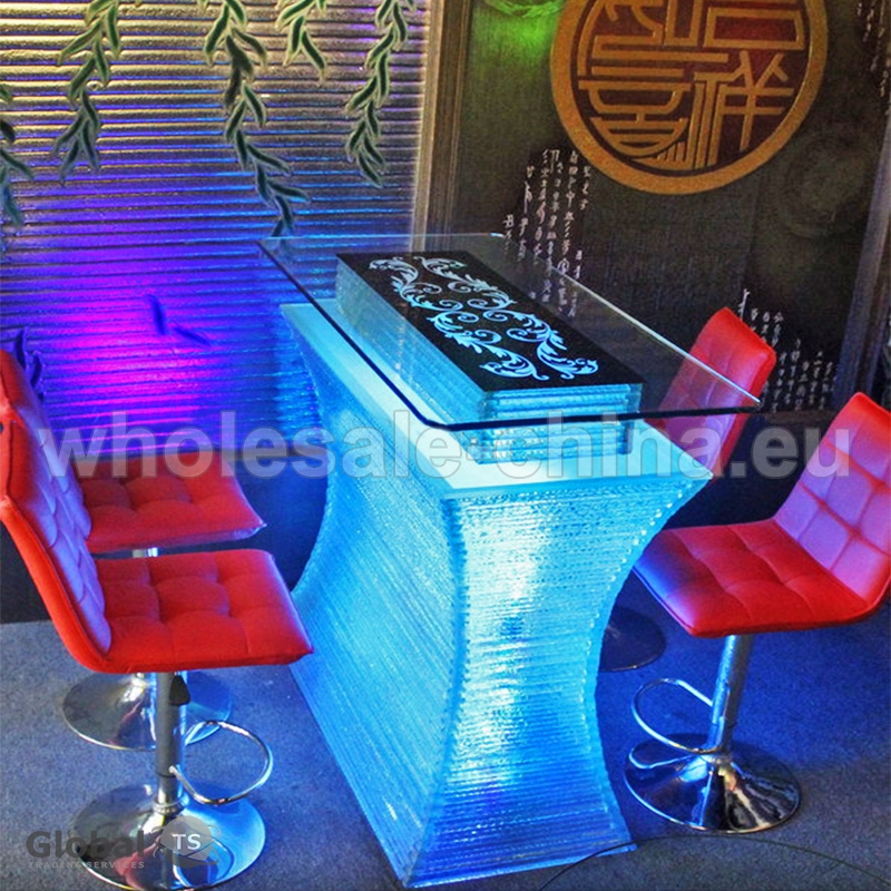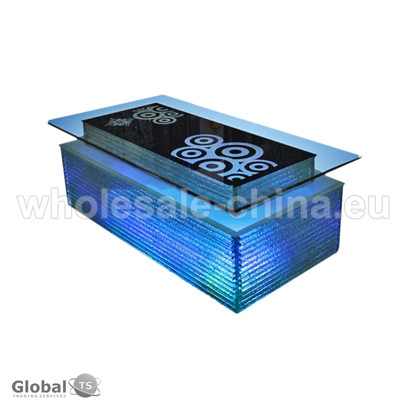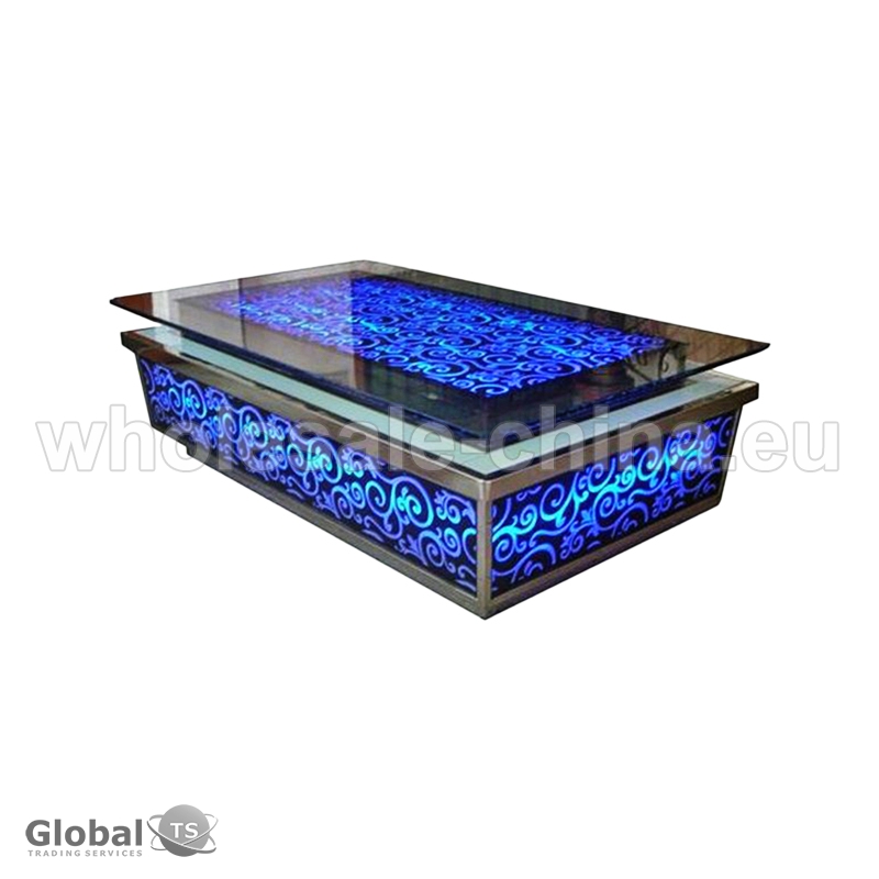 Table made of toughened glass will be great addition to your interior. LED technology made it appearance modern and fashionable. It will pass to any design. Stainless steel as frame made it very stable and art glass as decoration add unique into general design.