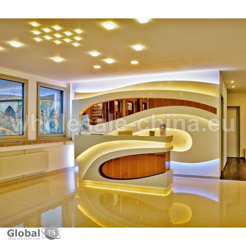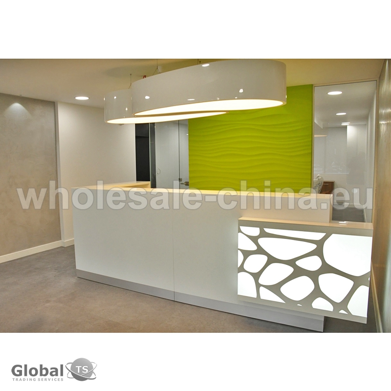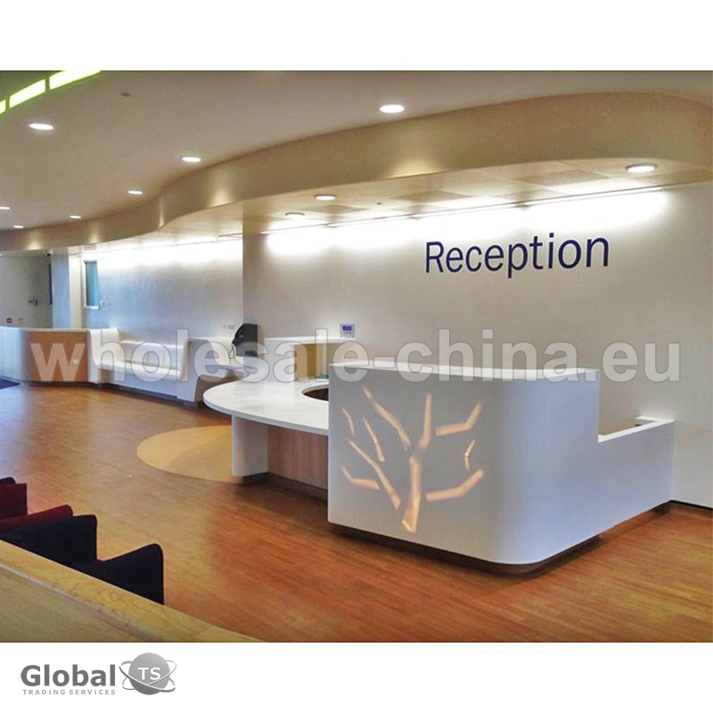 1) high quality acrylic solid surface;2) it is ready made desk without any installation work; 3) contains drawers and storage cabinets; 4) led light. Different colors and sizes available – as per customer’s requests. Such reception counter adds a note of extra luxury and elegance to hotel reception area.