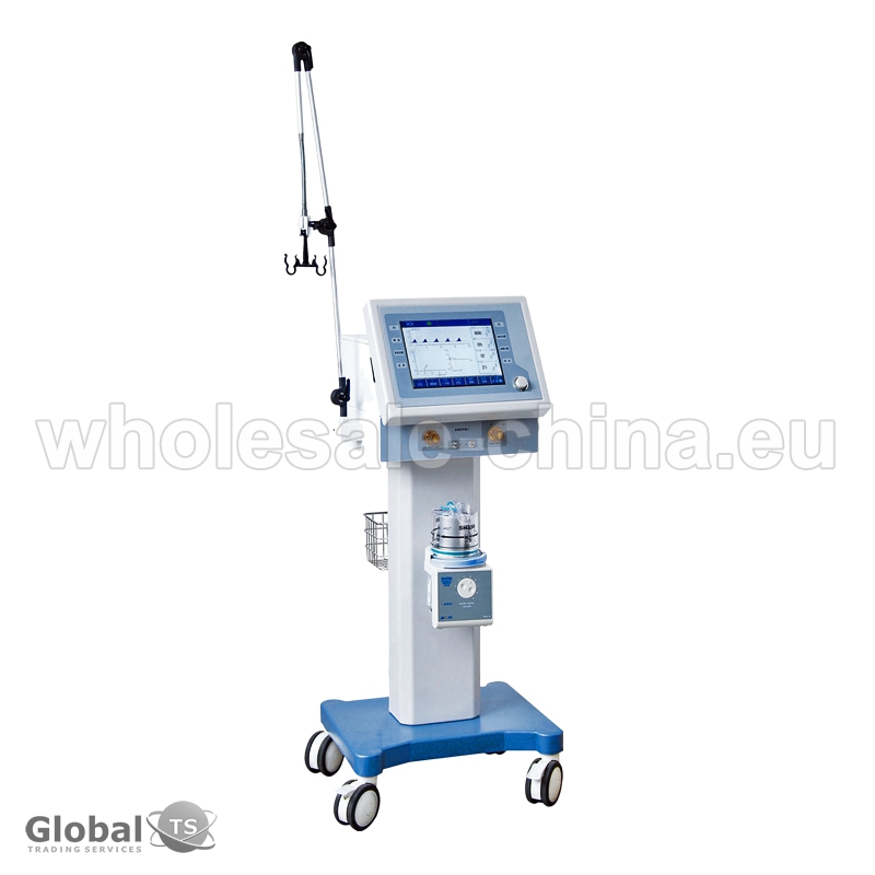 High quality medical ventilator machine. It is gas driven by medical compressed oxygen and compressed air. In the aspiratory phase, two streams of compressed gas (compressed oxygen and compressed air) flow into a high performance air-oxygen mixer to form a mix of oxygen and air with a certain pressure. Other specifications: