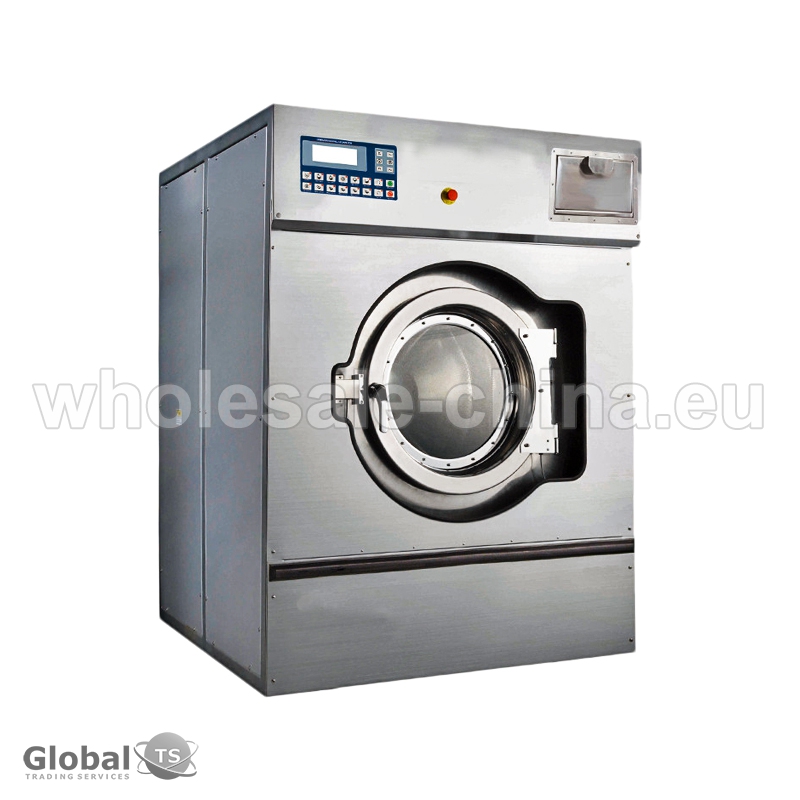 Washing machine for commercial use. It can be used in hotels, factories, schools, laundry houses. Compact design for saving space. Programmable water levels and water temperature. Stainless steel door with large sight glass. Standard hot and cold water inlets. High quality at the best price.