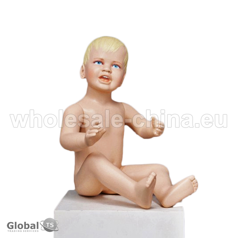 Sitting child mannequin. The item displayed on this child mannequin allows customers fully imagine how clothes will look on the child; thereby it helps to attract more and more buyers. Often the mannequin itself is an element of the shopwindow decoration that promotes success of the product.