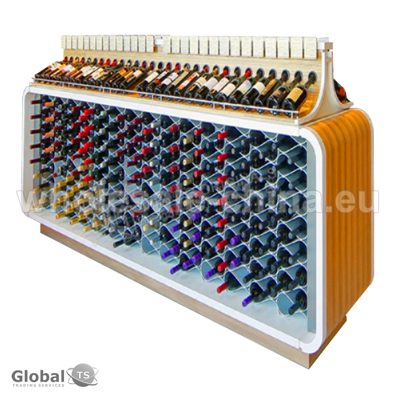 High quality wine display gondola made from environmentally friendly materials in accordance with modern standards. It has a lot of space for wine bottles storage. Strong structure assures long-term reliability. Different colors and sizes are available. Warranty - 3 years.