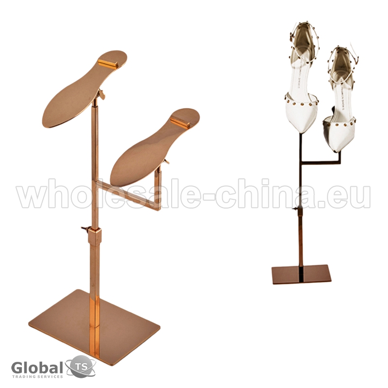 Get organized with this shoe stand. This handy, freestanding rack helps keep shoes neat and more accessible. This stand is a great way to catch customers' attention and show your shoes from differnt sides. You could choose suitable height from 280mm to 380 mm with special adjuster.