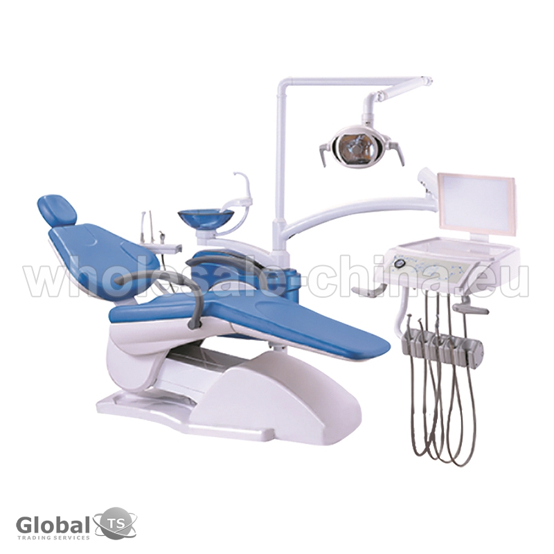 Dental unit with electromechanical ergonomic chair with 5 possible deployment tools with bottom hose.